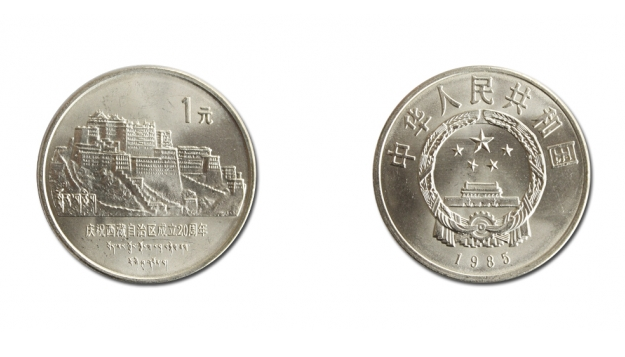 藏品介绍: 1、藏品的基本信息 【名 称】庆祝西藏自治区成立20周年流通纪念币 【类 别】钱币 【版 别】普制币 【面 值】1元 【材 质】铜镍合金 【规 格】直径30mm 【发行时间】1985-9-1 【发行总量】261.2万枚 【铸造单位】上海造币厂 【发行机构】中国人民银行 2、藏品的基本资料 庆祝西藏自治区成立20周年流通纪念币由中国人民银行于1985年9月1日发行,该币是继国庆35周年流通纪念币之后,央行发行的第二套流通纪念币。 该套流通纪念币共一枚,面额1元,发行量261.2万枚。材质为铜镍合金,直径30毫米,9.32克,由上海造币厂打造。该币正面图案为“中华人民共和国”国名,国徽和“1985”年号;背面图案为布达拉宫、“庆祝西藏自治区成立20周年”汉藏主题文字和“1元”面额。设计者在极其有限的空间内,以远景和写实的手法,将布达拉宫壮丽大气的一面展现在了直径只有3厘米的钱币上。 |